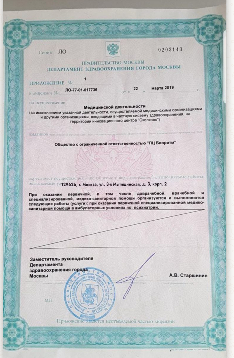 Врач-психиатр, психотерапевт. Занимается психосоматическими расстройствам, паническими атаками, семейной терапией, повышенной нервозностью, тревожными и фобическими состояниями, лечением депрессии, лечением нервной анорексии, ожирения и метаболического синдрома, сексуальной дисфункции, а так же скорой психотерапевтической и психиатрической помощью.