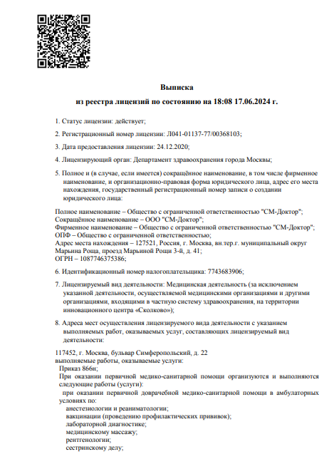 Диапазоны цен на приём врачей и специалистов, услуги и диагностику в СМ-Доктор в Марьиной Роще.