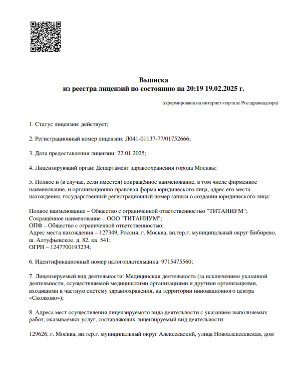 Диапазоны цен на приём врачей и специалистов, услуги и диагностику в стоматологической клинике Титаниум в Москве.