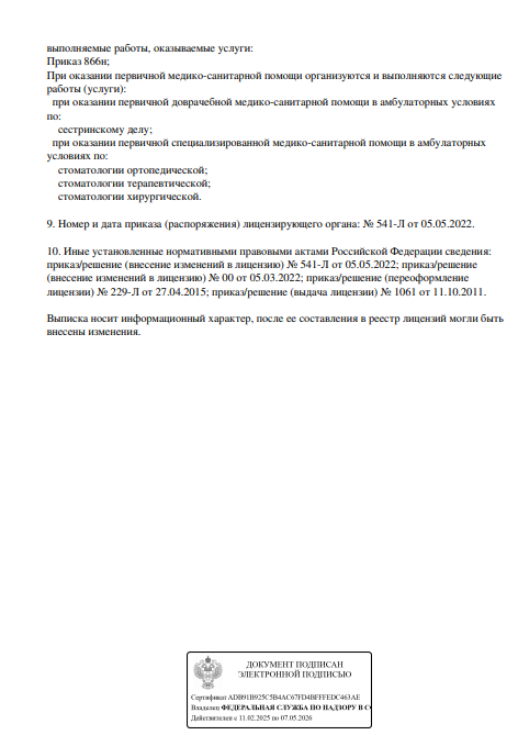 Проводит лечение кариеса различной степени выраженности, пульпита, периодонтита, гингивита, стоматита, проводит профессиональную гигиену полости рта, отбеливание зубов.