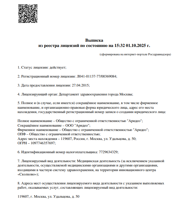 Диапазоны цен на приём врачей и специалистов, услуги и диагностику в Стоматология Аридео в Москве.